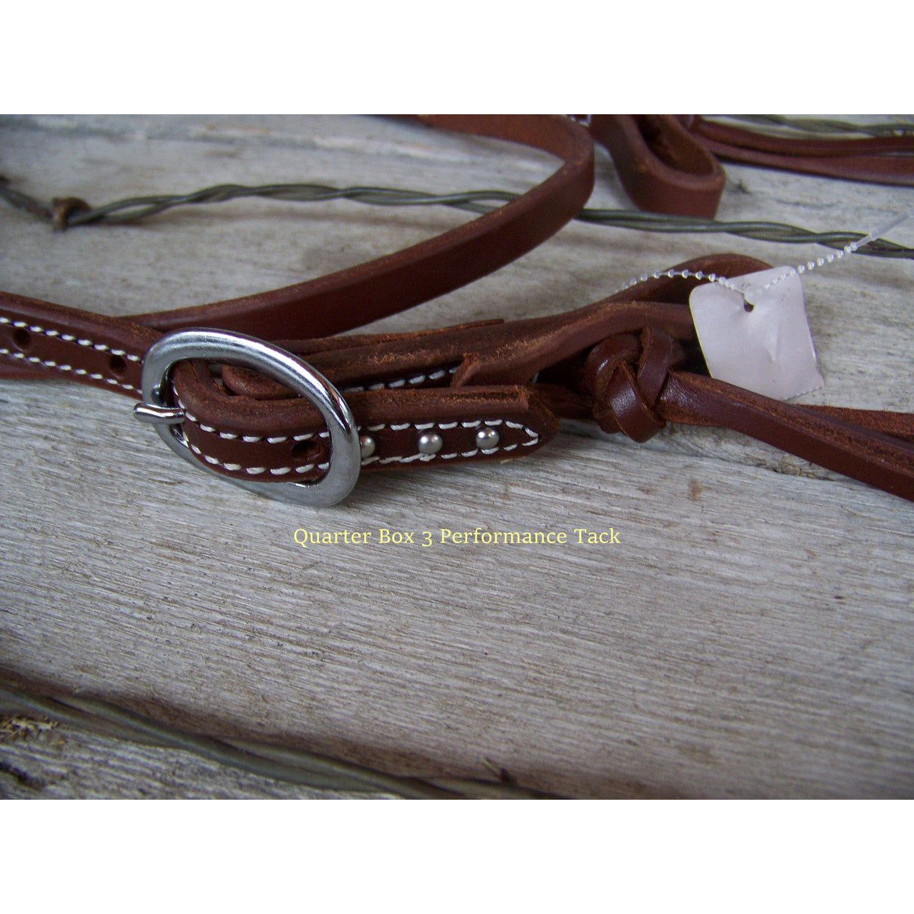 Dark oil, browband headstall with stainless steel dots. Pineapple knot quick change.