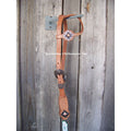 Made with Hermann Oak Harness Leather. Copper Floral Hardware for that Punchy Cowboy Look. Burnished Edges. 3/4" Crown. Diamond Concho.