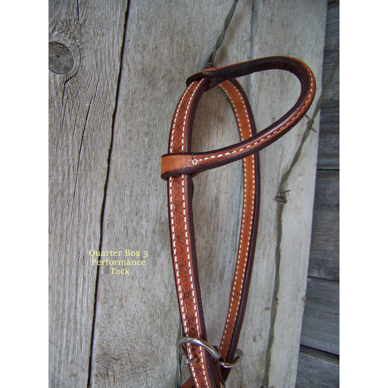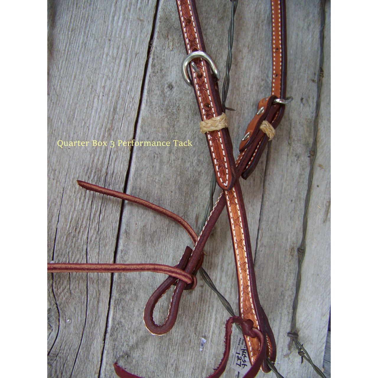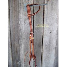 Headstall - One Ear Natural Oil w/Rawhide Braid Keepers (Barbwire)
