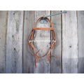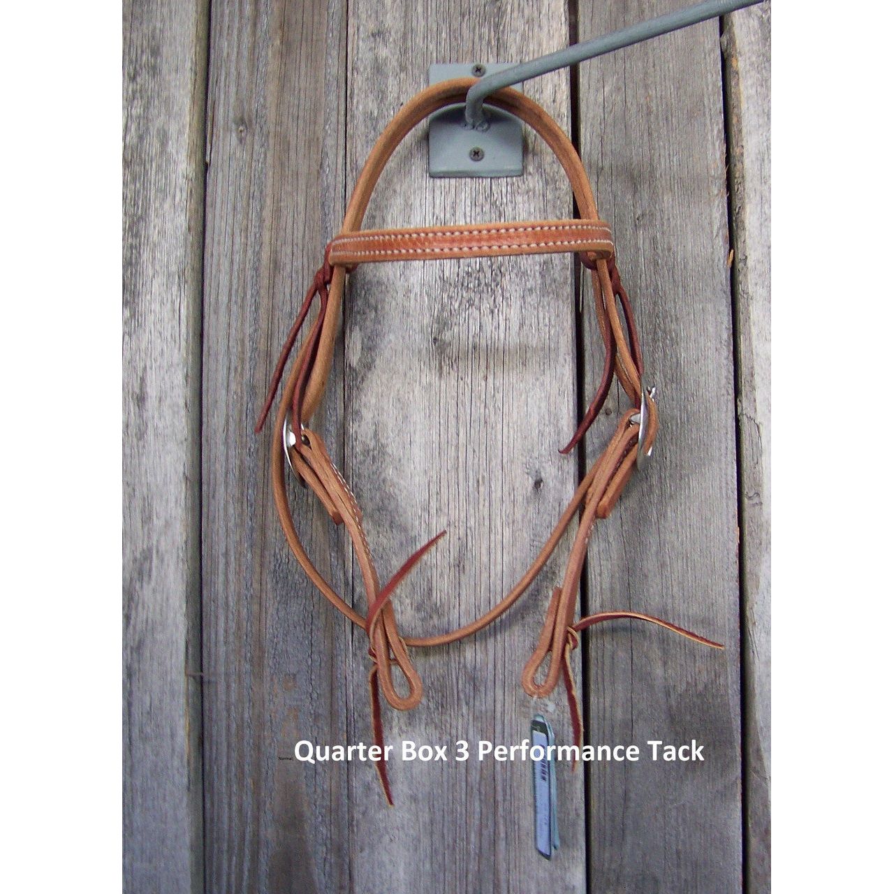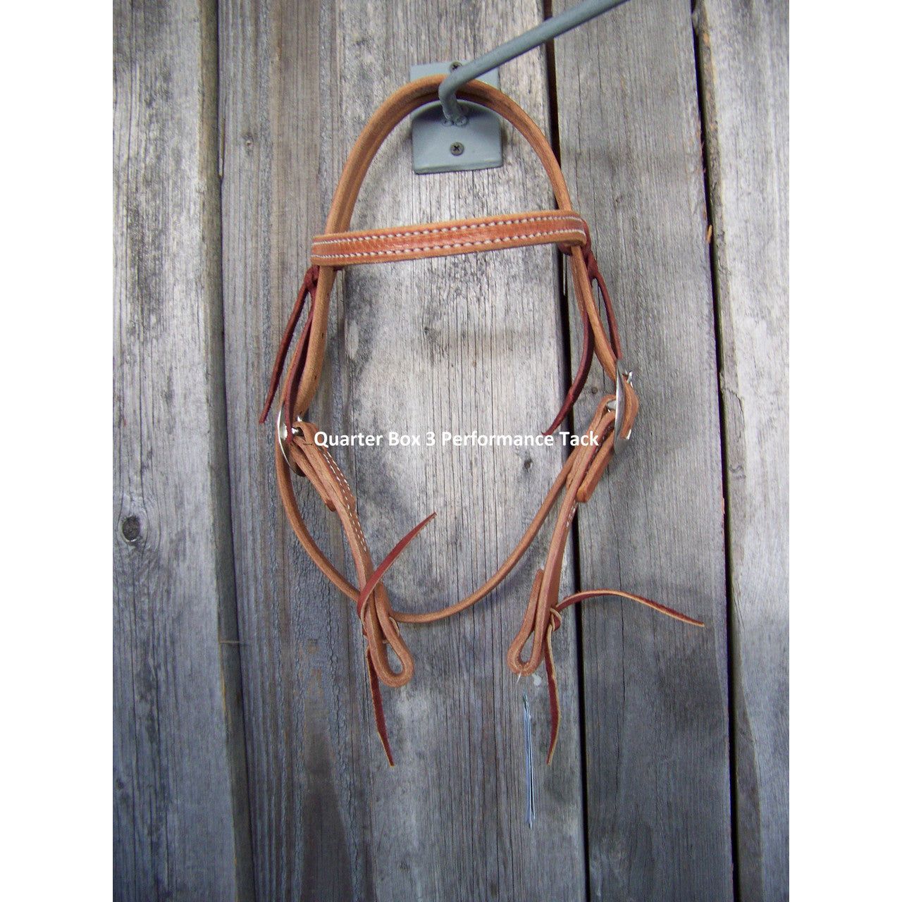 Pony Tack! Herman Oak Harness Leather headstall with stainless steel hardware, burnished edges, and latigo tie at the browband.