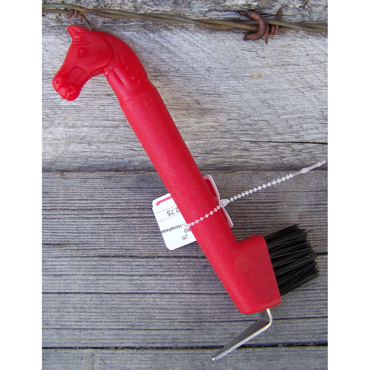 Super stiff nylon bristles with tempered steel hoof pick and polymar handle.