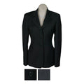 Charcoal grey stretch show coat with soft alternating pink and purple pinstripes. Charcoal grey lining.