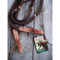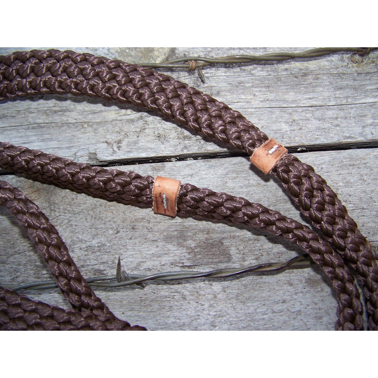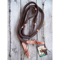 9 Foot rein with markers for balanced hand placement. Water loops weight the rein at the bit, promoting better response. Comes with a great hang tag that explains the use of the markers and suggested hand placements. Waterloops and markers made from hanress leather. Brown and Black can be special ordered.