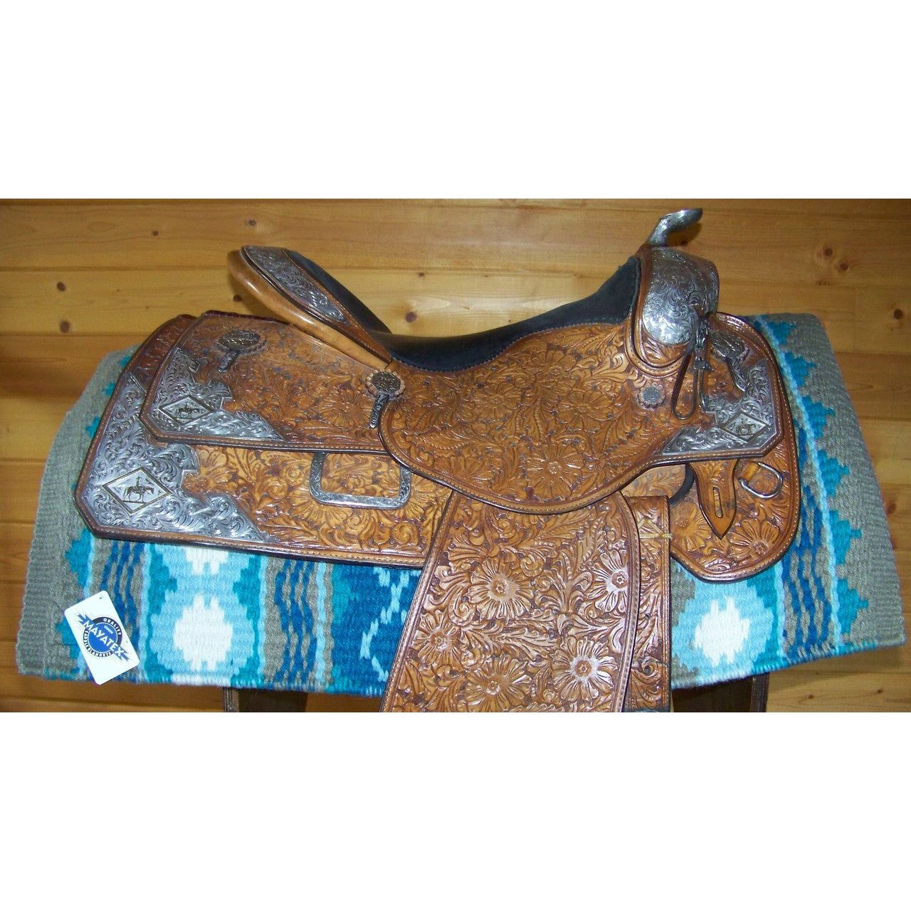 Riverland Show Blanket - 36x34 (Taupe/Teal/Blue/Plume/Cream) by Mayatex