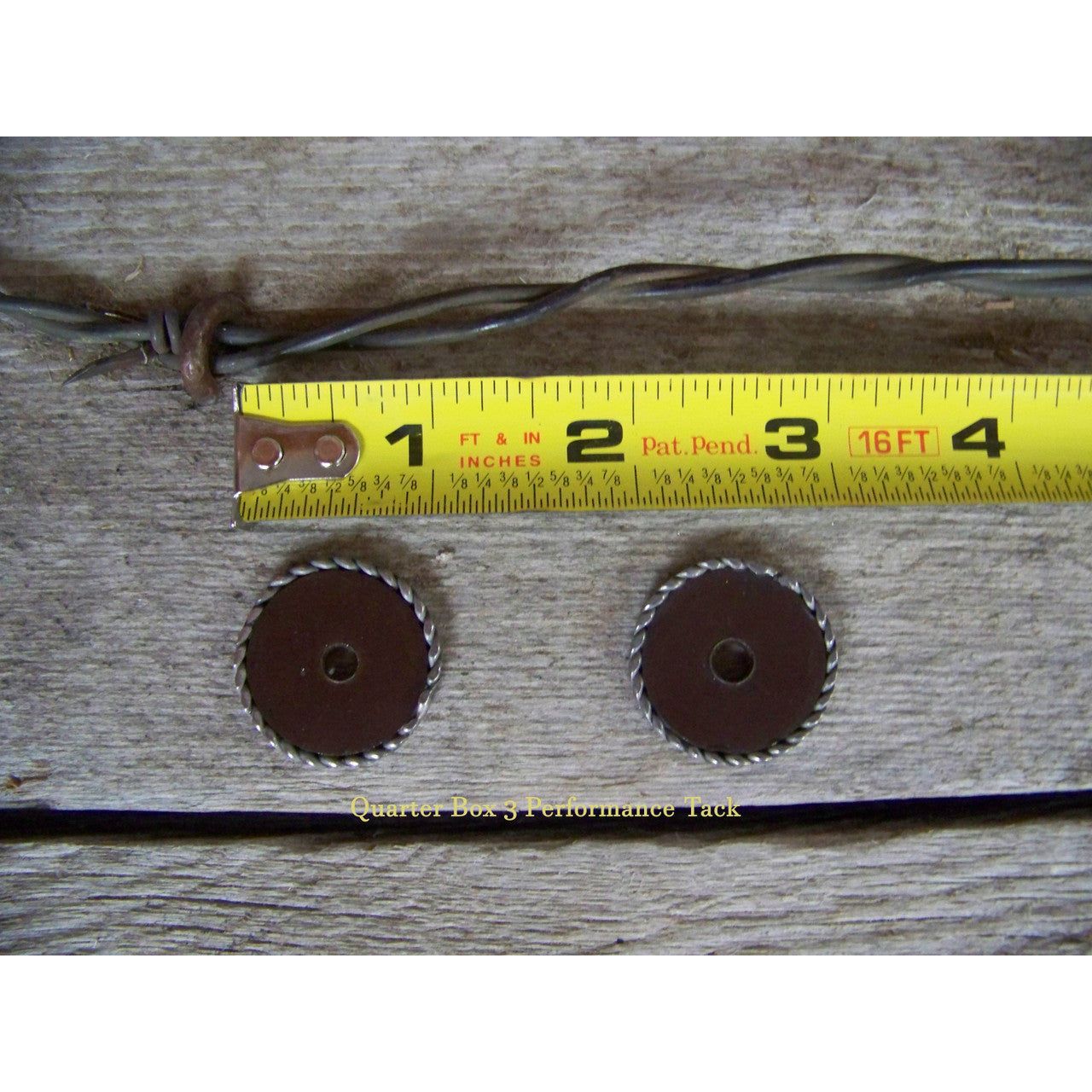 Francoise Gauthier Antique Round with SS Brushed Rope Edge - 1" each. Brushed stainless steel. I'll ship each set of spurs with rowel pins.
