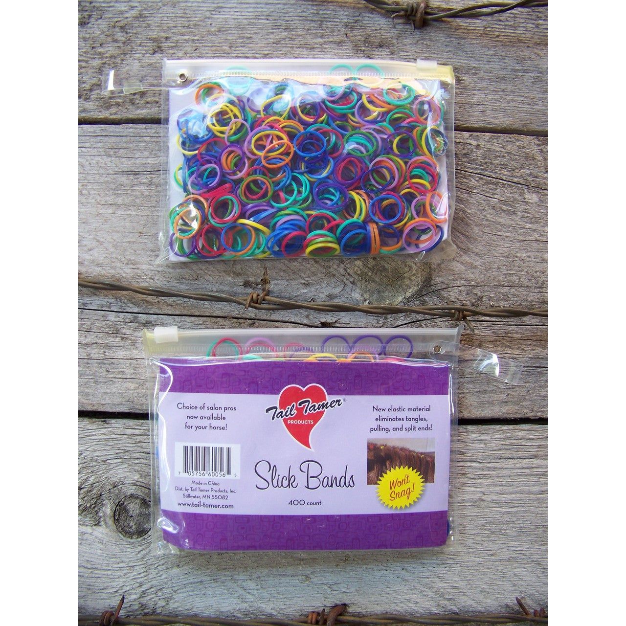 Slick Bands - New elastic material eliminates tangles, pulling and broken ends. Choice of salon pros, now available for your horse. Handy resealable bag of 400 bands. Unlike rubber bands, which break down with age and sunlight, Slick Bands won't dry out. Every band is usable, this year and next! And they won't dry out your mouth and taste bad when you are banding!