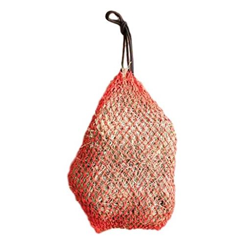 The Professionals Choice Slow Feed Hay Net features 1" holes to encourage slower eating. Heavy duty rope to hang at desired height. 30 day manufacturer's money back guarantee. 29"x 13" before expanded. 39" rope.