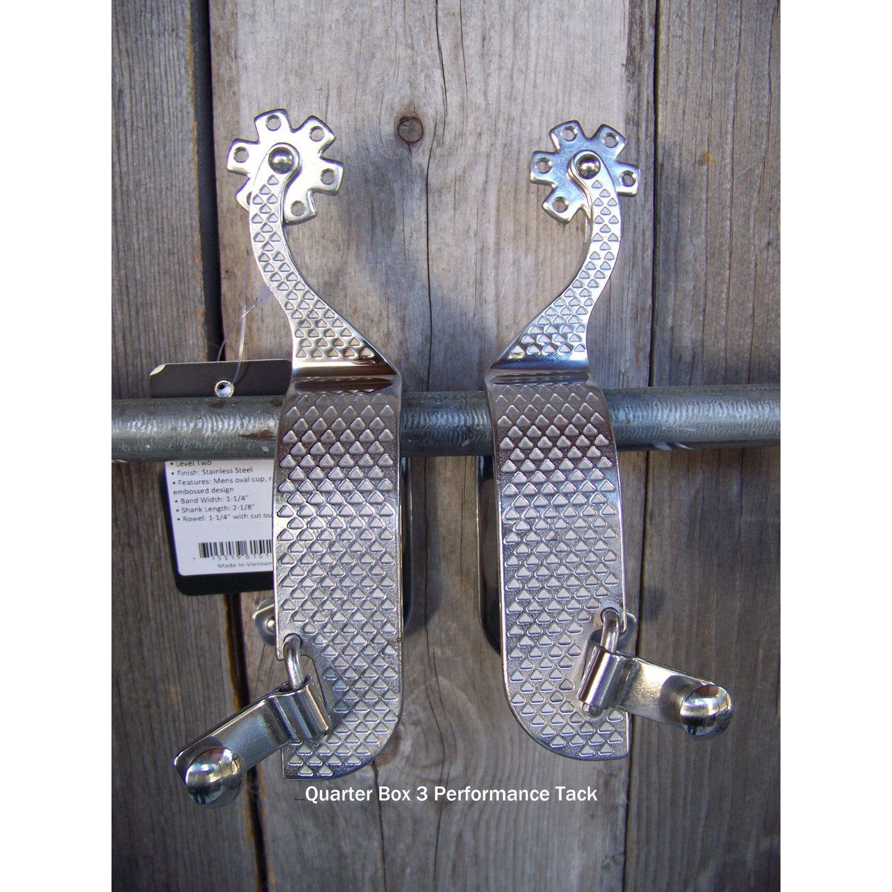 Level 2 Spurs – Moderate Effect – Level two spurs are an all around spur for everyday riding. They suit any type of rider. They have a medium shank and rowels that are not too sharp.