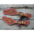 Let's go retro with a touch of modern with these youth spur straps by Rafter T Ranch Company. Spur straps feature floral tooling, two tone finish and colored buckstitch available in purple, turquoise, lime, pink, and orange.