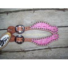 Made in the USA by San Saba Equine!  Harness Leather spur straps that feature a fun exotic print in various leather patterns and colors along with 1/4 dots in stainless steel, old silver, or copper.  Check out the different variations in stock.
