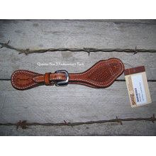 Basketweave tooled single-ply, stitched spur straps accented with a border of mini-spots.  Available in natural or chestnut finish in men's women's and youth sizes.  Stainless steel buckles.  (Check out the other listings for the color and size of your choice!!!!)