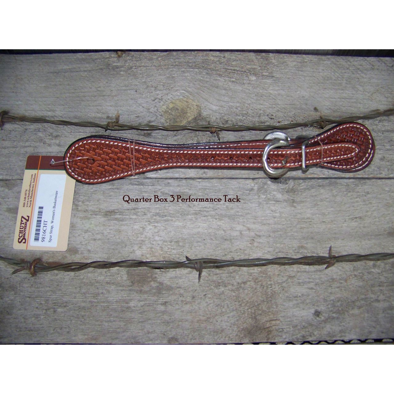 New color in the popular Sagebrush spur straps. Chestnut! Scalloped basket tooled spur straps, single-ply, stitched with 5/8" nickle plated buckles and loops.