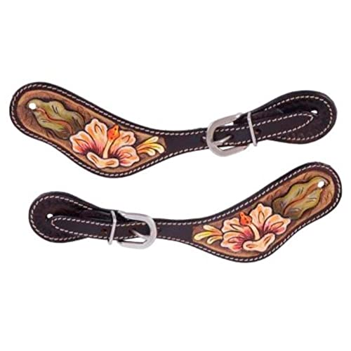 Designed to work in, the Texas Grace Spur Straps are gorgeous, with rich chocolate leather and detailed lilies hand painted in shades of green, pink, gold, and cream. You'll love how these look next to your boots!