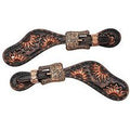 Handtooled sunflower pattern is accented with vintage coloring and engraved hardware. These fit most ladies Western boots.