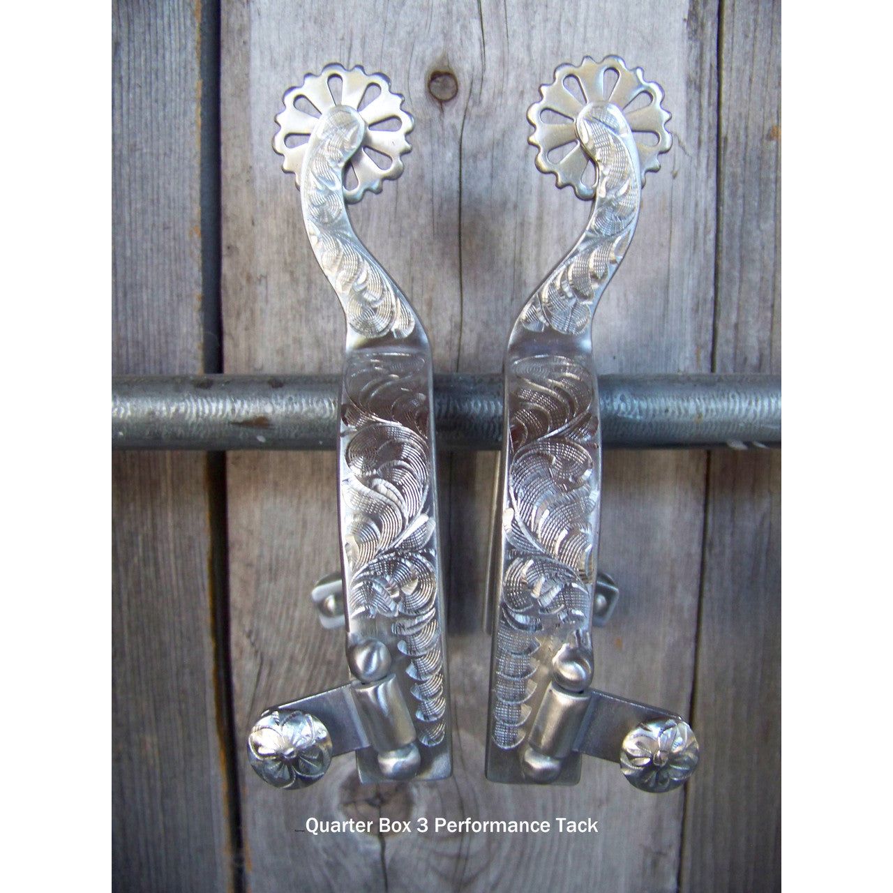 Level 3 Spurs - Moderate to Strong Effect – Level three spurs have a shank longer than 2” and or bigger rowels. The rowels are not too sharp. They are generally made for riders with longer legs so they can reach the horse easily.