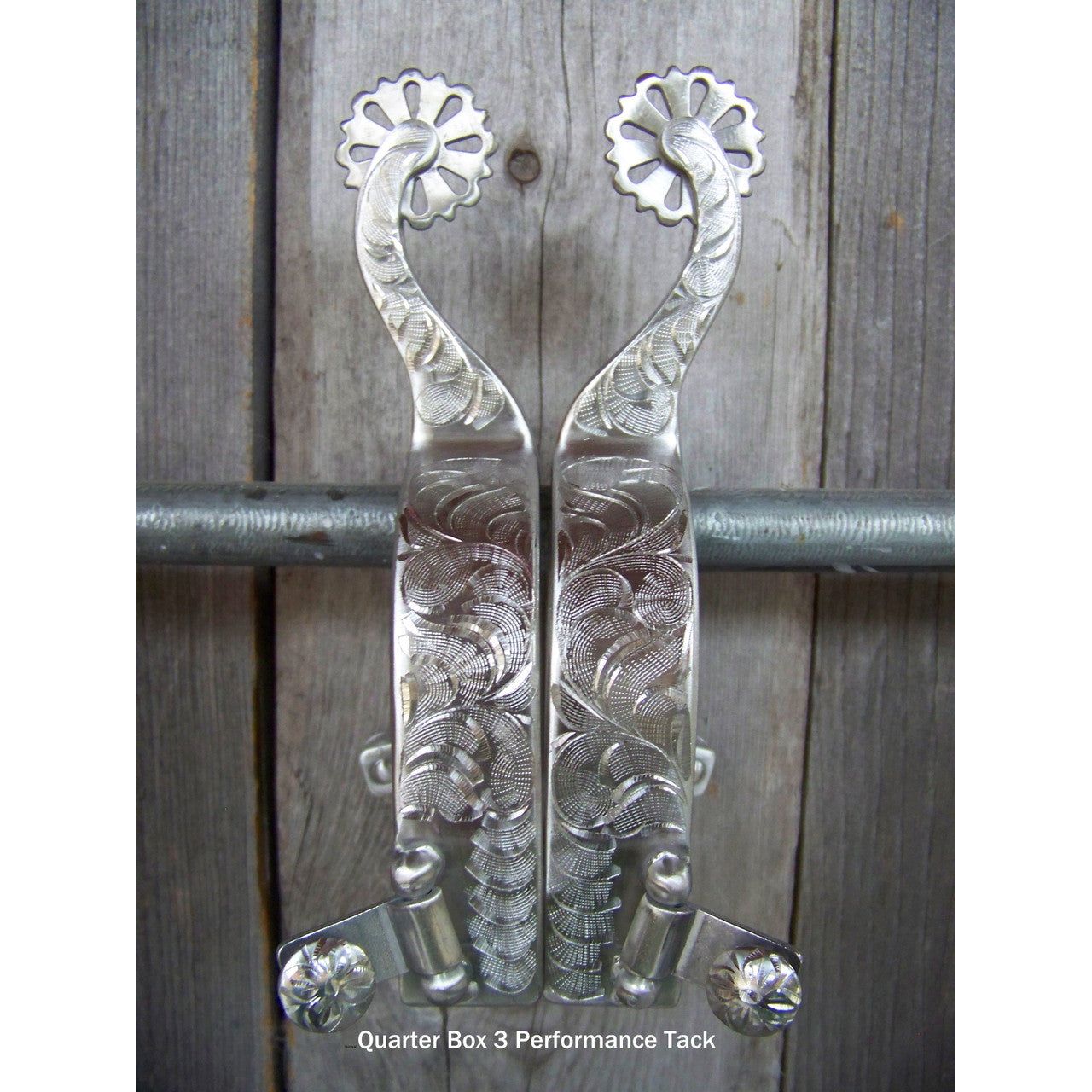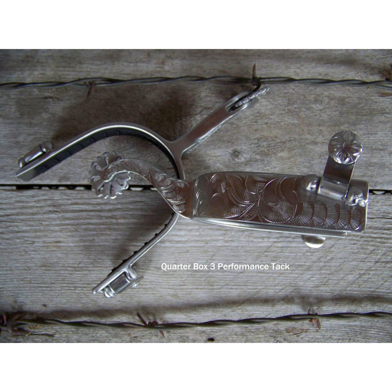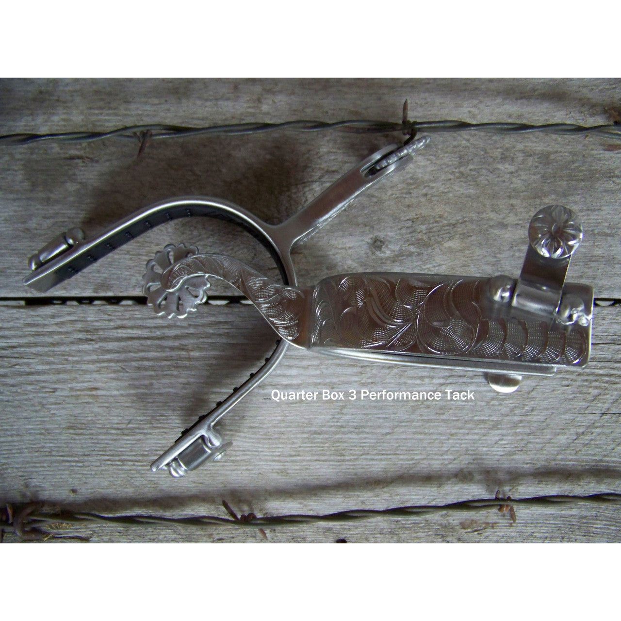 Level 3 Spurs - Moderate to Strong Effect – Level three spurs have a shank longer than 2” and or bigger rowels. The rowels are not too sharp. They are generally made for riders with longer legs so they can reach the horse easily.