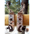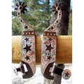Antique spur features engraved silver trim and star cut outs! Mens and ladies available.