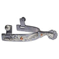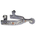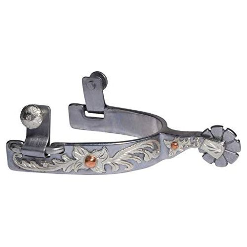 Decorative silver floral design on the 3/4" band, with a blunt 8 point rowel.