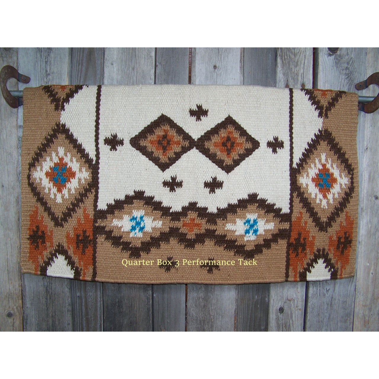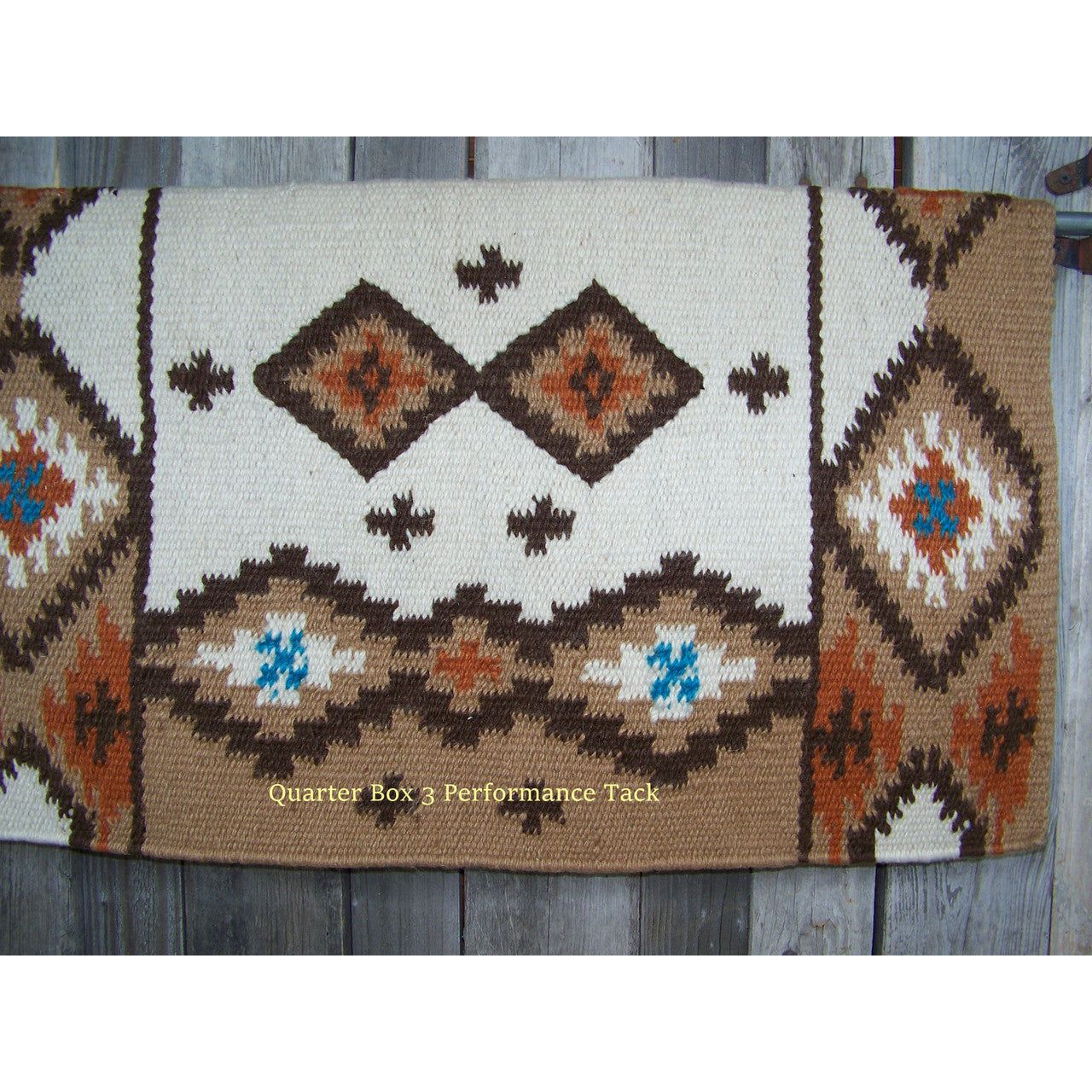 Square Cut Show Blanket - 38x34 (Indian Tan Base, Ivory, Chestnut Rust, Turq Accents)