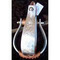 Engraved aluminum oxbow stirrups measure 1 1/2" width, 5 1/4" clearance.
