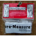 Sure Measure Horse & Pony Height & Weight Tape - Now made of wider unbreakable vinyl coated nylon. One side estimates the horses weight in both pounds and kilograms. Reverse side measures horses height in hands and centimeters. Also serves as a quick efficient daily conditioning guide. "Quick grip" for easy roll up.