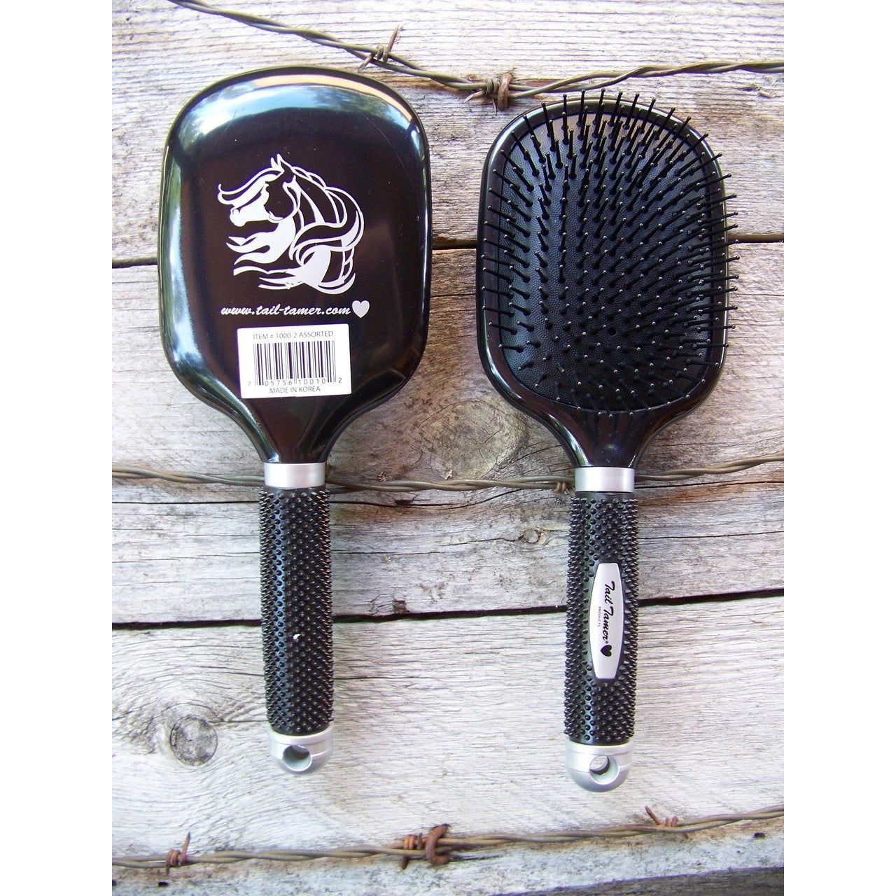 This comfortable extra padded handle feels great in your hand. This is NOT what you can find in your local discount store. Tail Tamer's brushes are made with ABS plastic, making them much stronger for barn use. The brush pads are slotted and laser sealed so the pad won¿t pop out when you are brushing thick mane or tail.